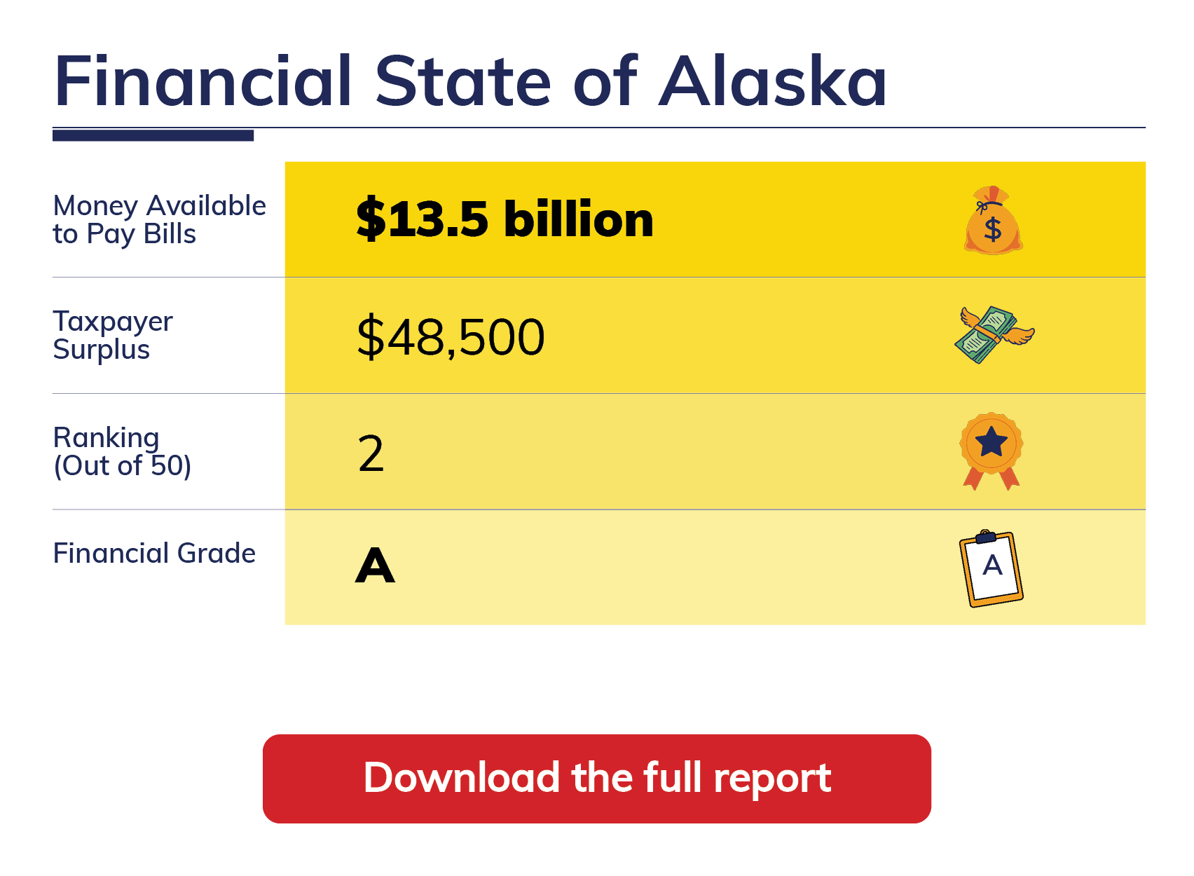 Alaska has $28.3 billion of assets available to pay the state's bills totaling $14.8 billion. |